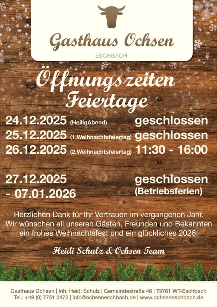 Herzlich Willkommen in Eschbach beim Gasthaus Ochsen.